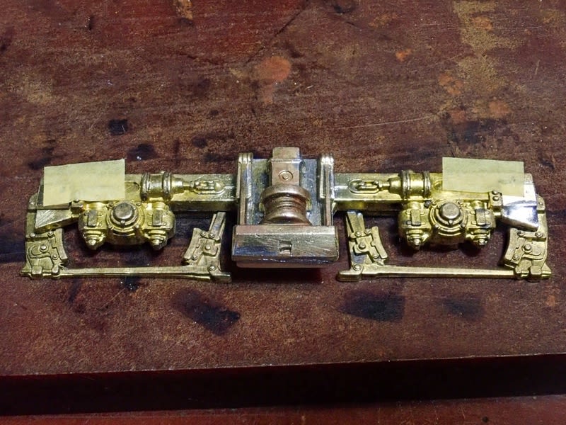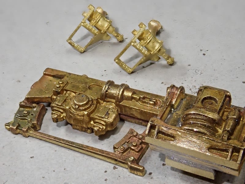しなのマイクロの砂箱を所定の位置に置いてみます。実物の写真を見ていると「NG」だと感じます。 砂箱の上辺は台車の主題枠と大体同じ高さにきます。