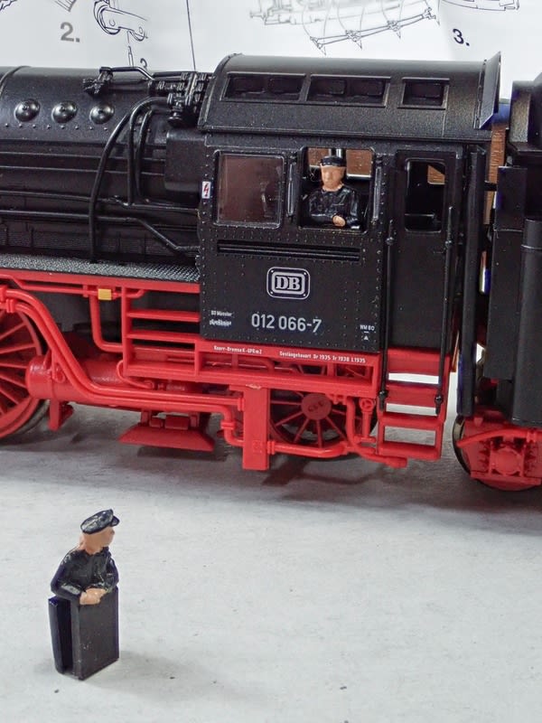 こういう立ち姿の機関士です。 助士と同じ身長にするには8mm が良いのですが7.5mm にしました。