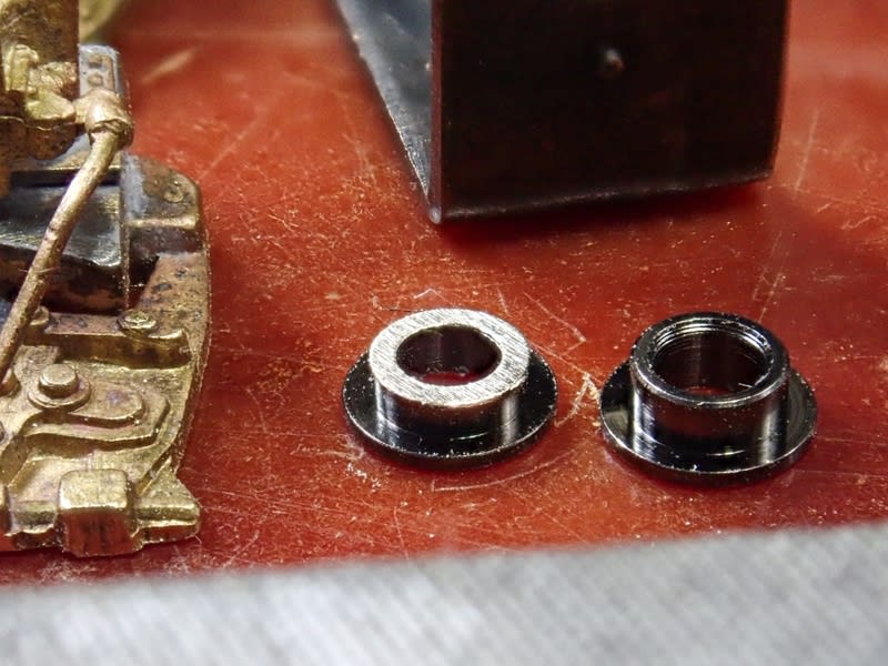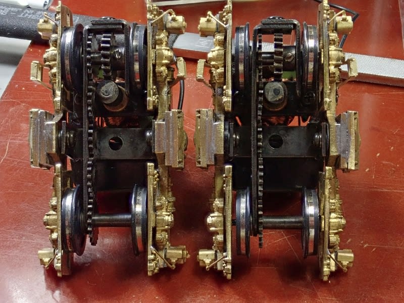 新しく大幅に削った台車枠で組んでみたのが左です。 片側に0.5mm のワッシャ2枚必要でした。