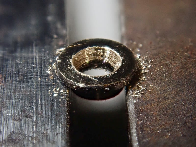 低頭ネジはこの様に最後の最後はネジが切られておらずですので、段付きワッシャのその部分を削ることをやってみます。