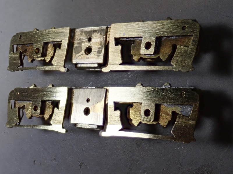 わざわざ貼った0.4mm 厚の真鍮板ですが、整えます。(下が整えたもの)