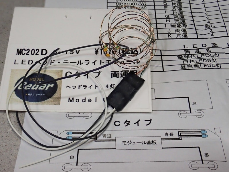 整形(バローべの四角断面ヤスリで溝を作りました)したプラ板のLED側にはアルミホイル(熱を逃すため)を貼ってから普通紙の切れ端を貼ります。
