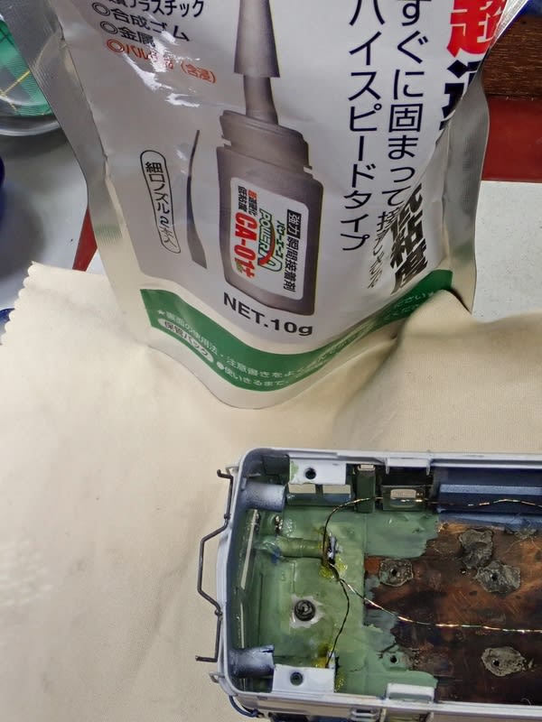 ゴム系Gー17で固定して置いてアルテコの瞬着を流します。