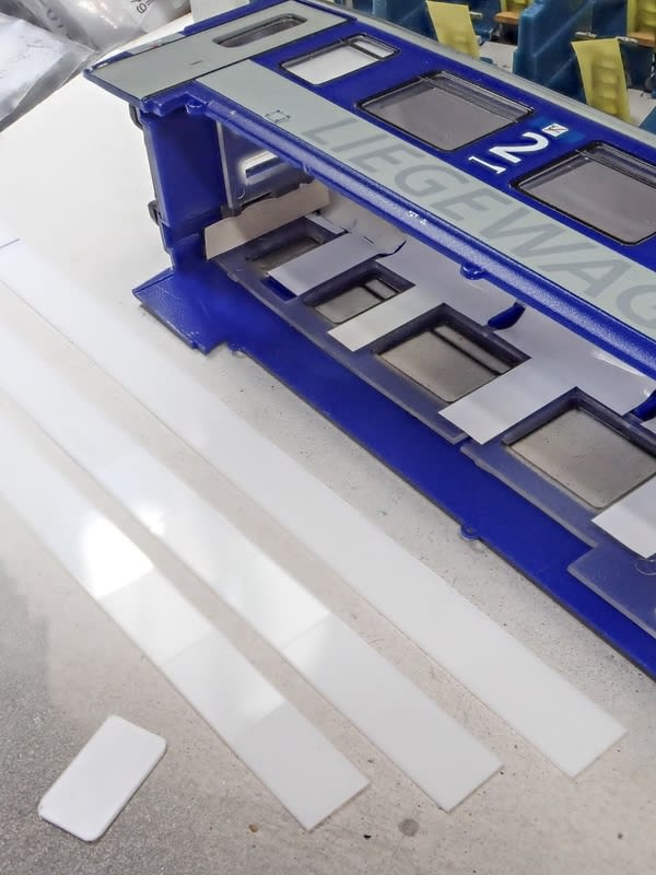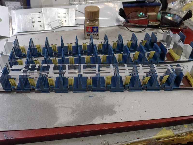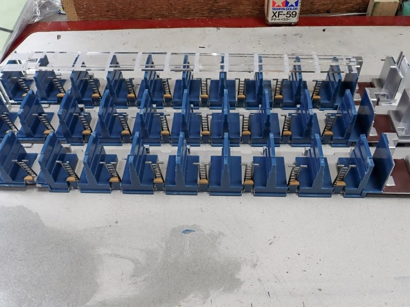 下の車体、一番上は両側トイレ化済み、真ん中は右だけトイレ化しました、手前はまだ何もしていません。