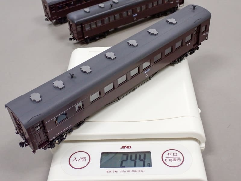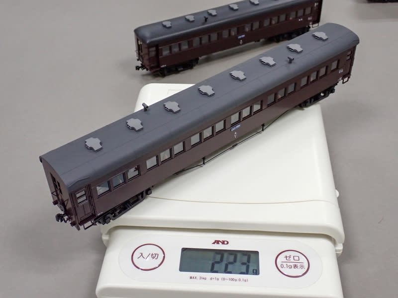 ちなみにKATOのJゲージプラ客車は225g程度です。