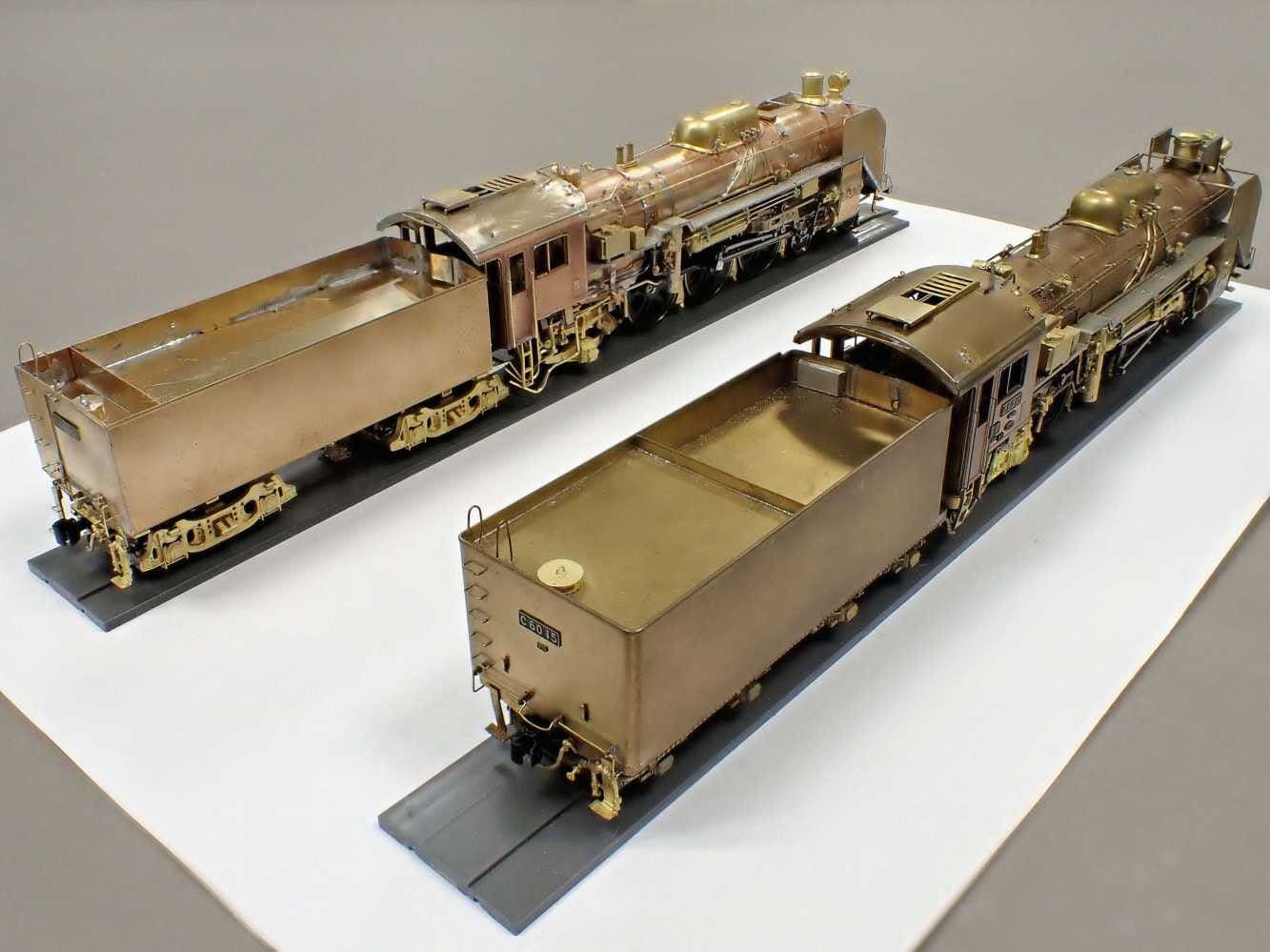 手前はまもなく発売される戦後形C59キットを若い設計者が組んだもの。 真鍮キットを組んだのは2度目との事。 奥は戦前形C59改造のC60キット素組。
