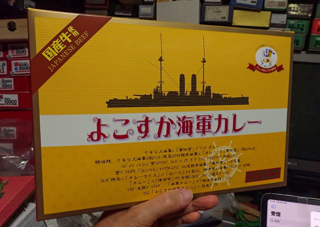 英子が父上の命日なので有料ホームに暮らす母上と一緒にお墓参り、その帰路、横須賀P.A.で買ってきたカレーです。