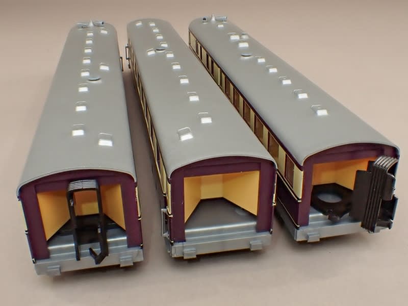 実物は両端が動力車ですが、模型では手前の荷物室付が動力です。