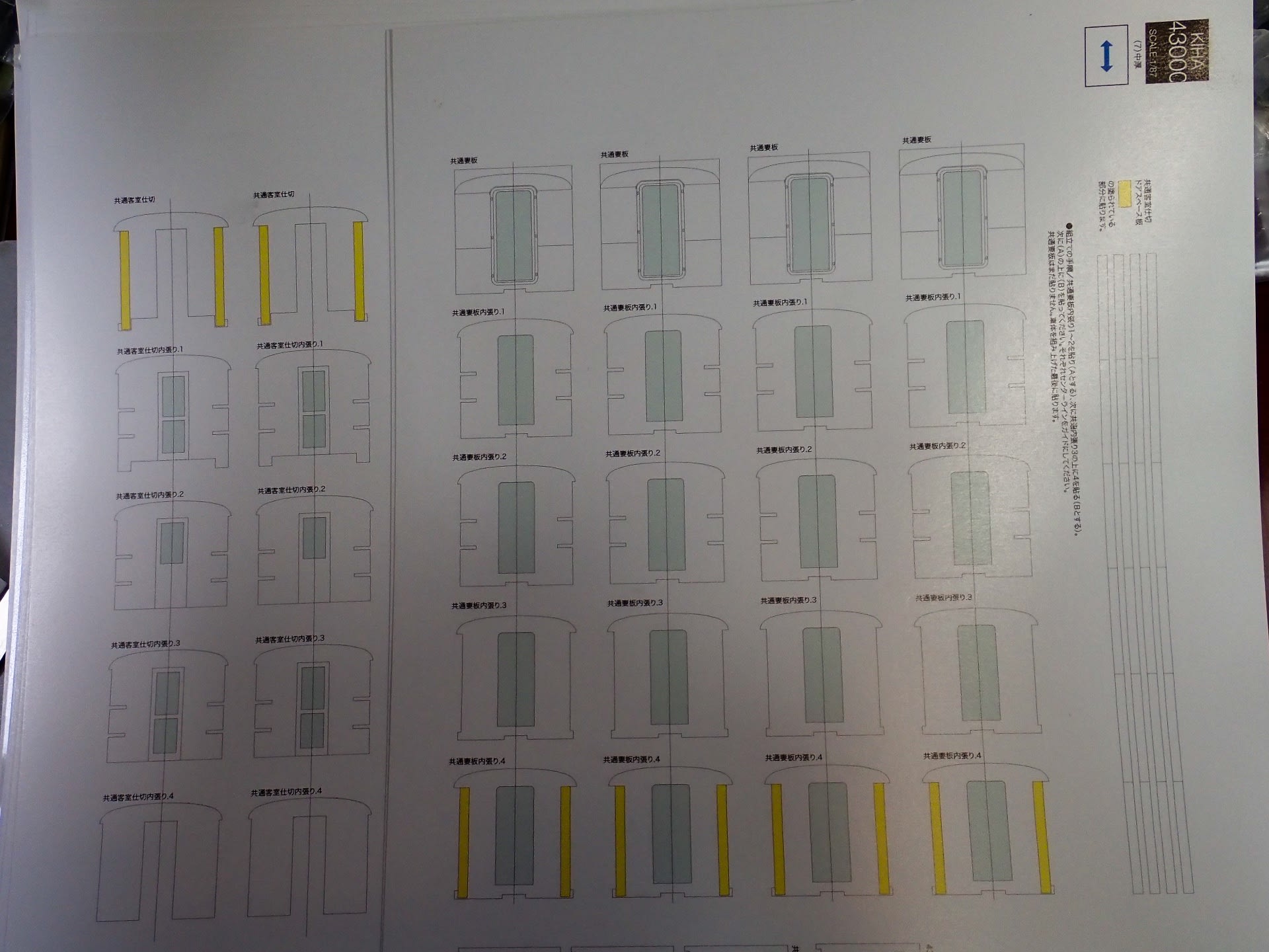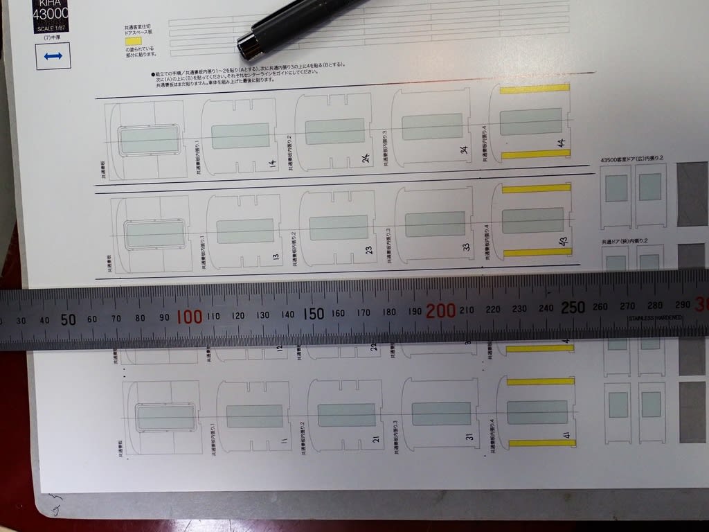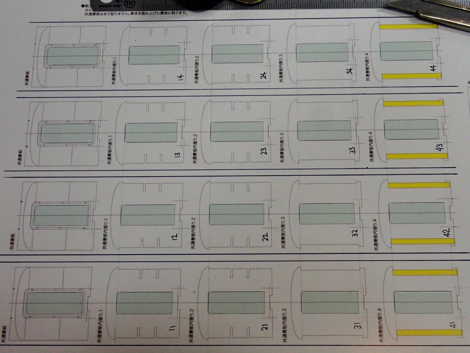 重ねて見ています。4枚必要な室内仕切り、4枚必要な妻板、共に5枚重ね+切片で6枚重ねです。
