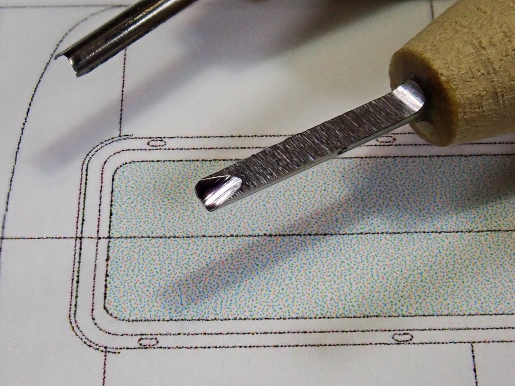 切断する線、鉛筆の罫書き。