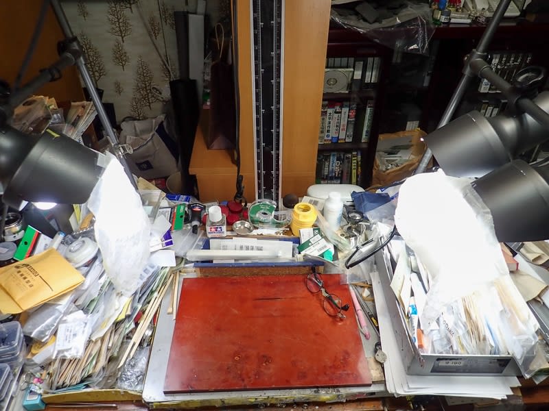 改装後(ライトを右に移しました) 紙のカットには右側光線が必要です。