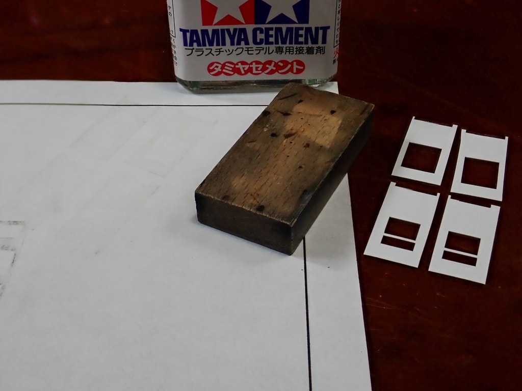 タミヤセメントで接着します。 それで普通紙と木のブロックを使って平面を出します。