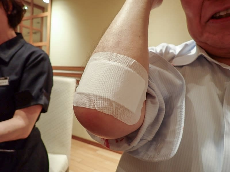 身障者用の黄色いブロックを踏んで仰向けに転倒しました。