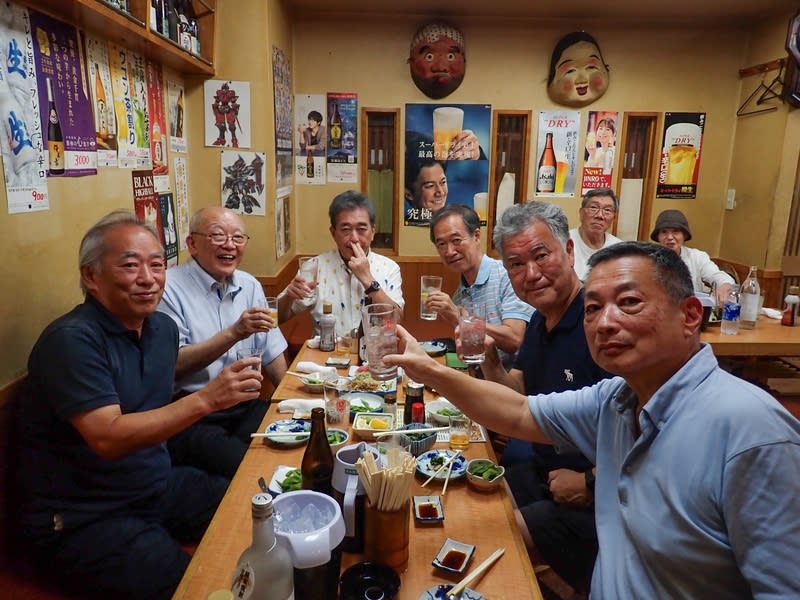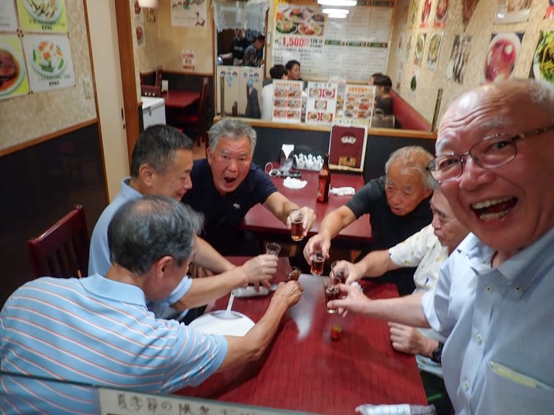 とある会合。 お店の人が撮るのですが、バックのお客様がきっちり写る顔をしてくれています。