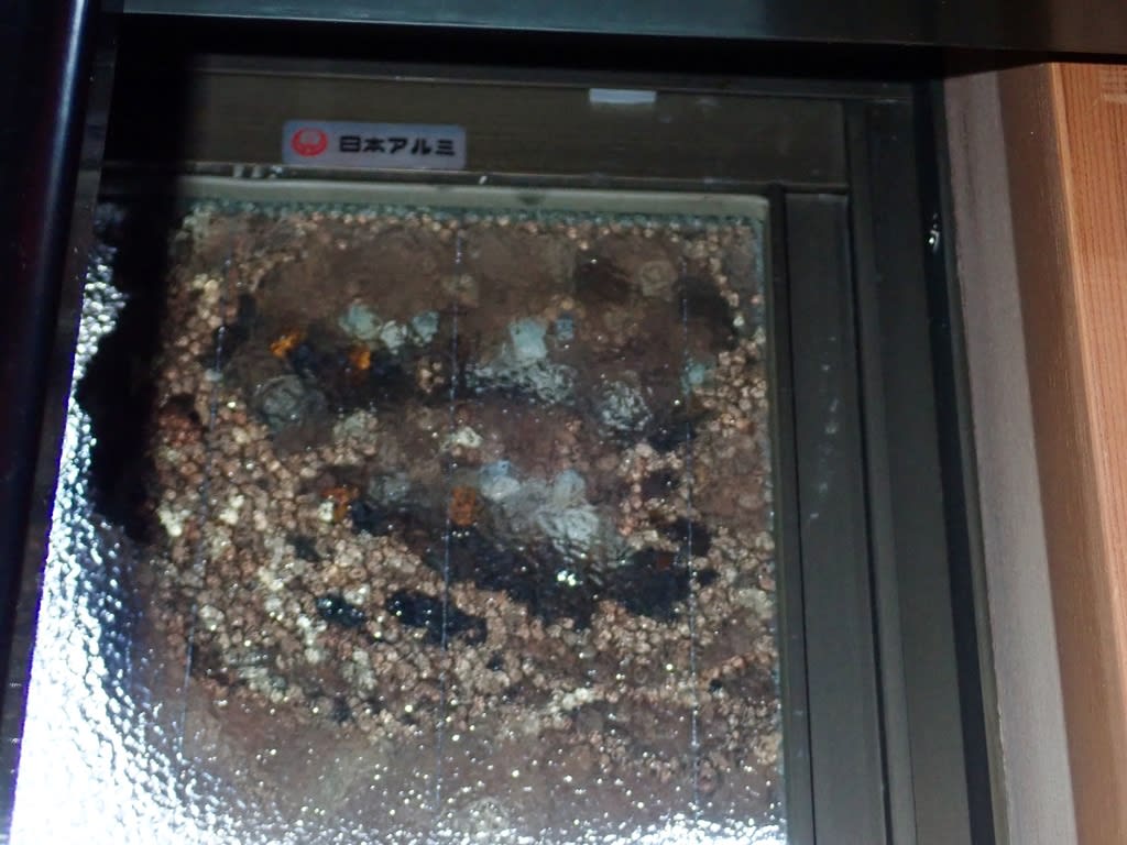 我家にスズメバチの巣ができていました。 曇りガラスですが幼虫や働きバチが見えます。