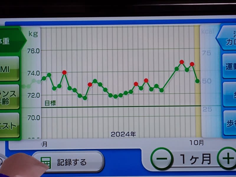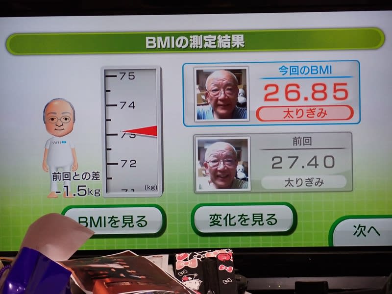 宴会が無い今日は1.5kg減、だが焼石に水です。