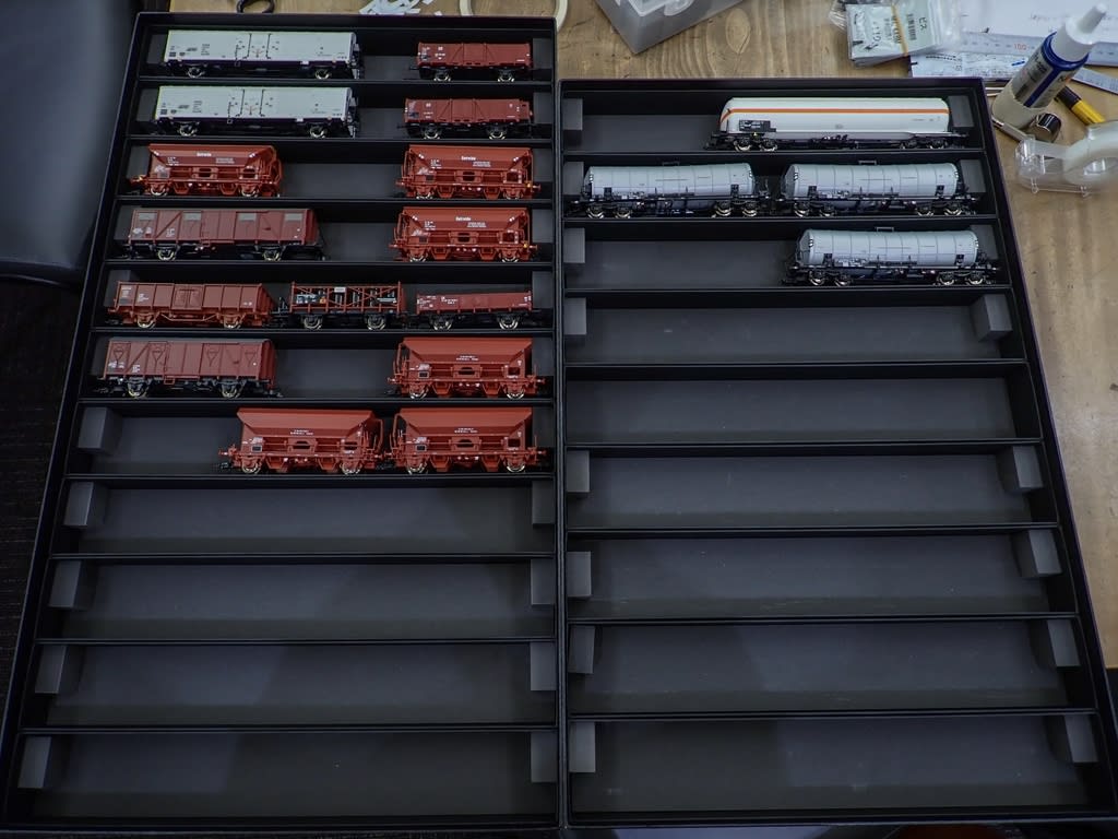 9段のケースから11段のケースに移し替えますが、タンク車は最大高が高いので9段ケースに残します。