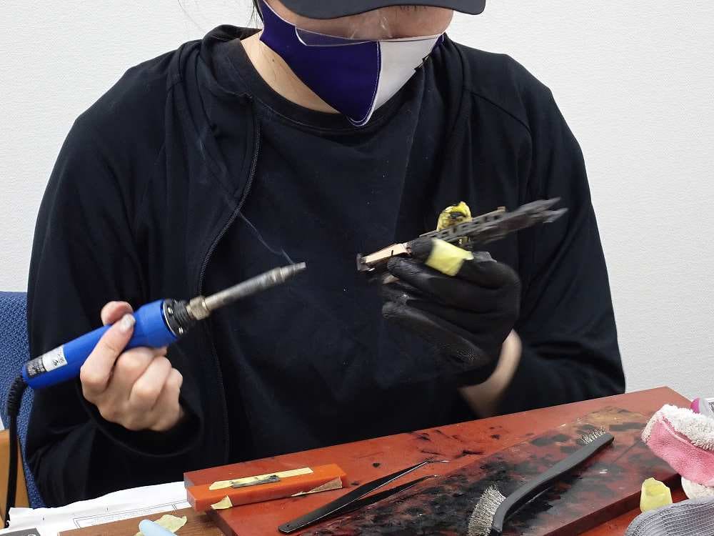 台枠はハンダが回らないように黒染め?