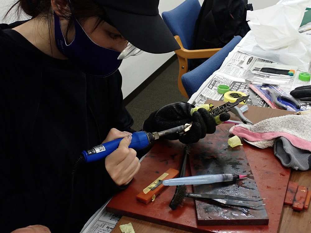火室底部ハンダ付け中