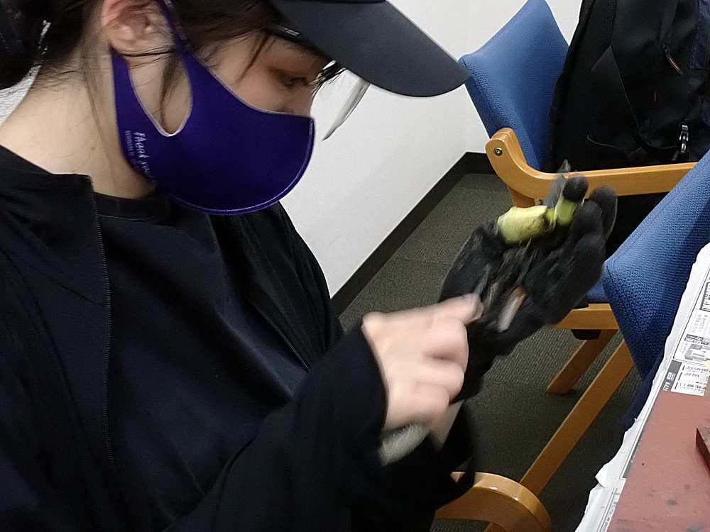 ゴム手袋に巻いたマスキングテープが増えています。
