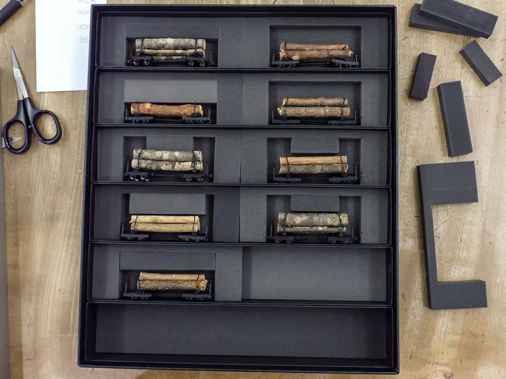 森林鉄道運材台車を展示できるように収納の工夫を凝らします。