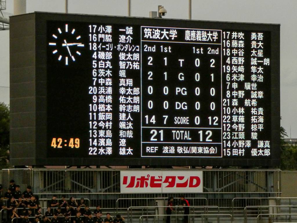 バックスに抜かれて慶應0ー14筑波