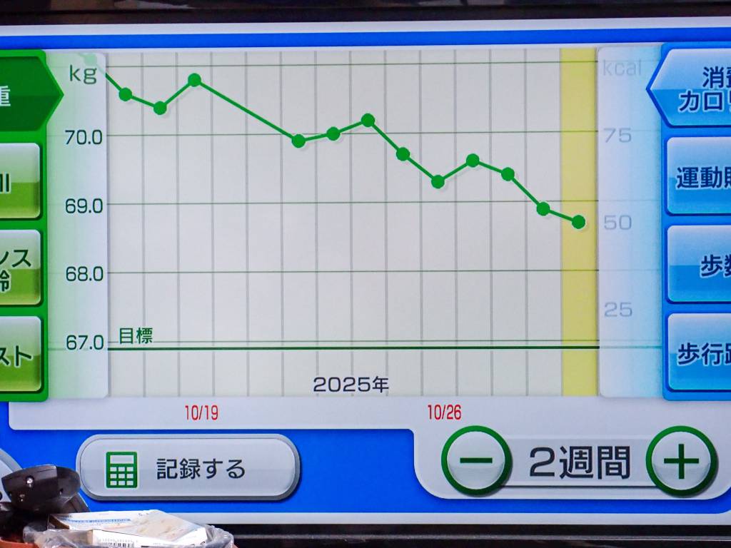 体重は遂に68キロ台に来ました。
