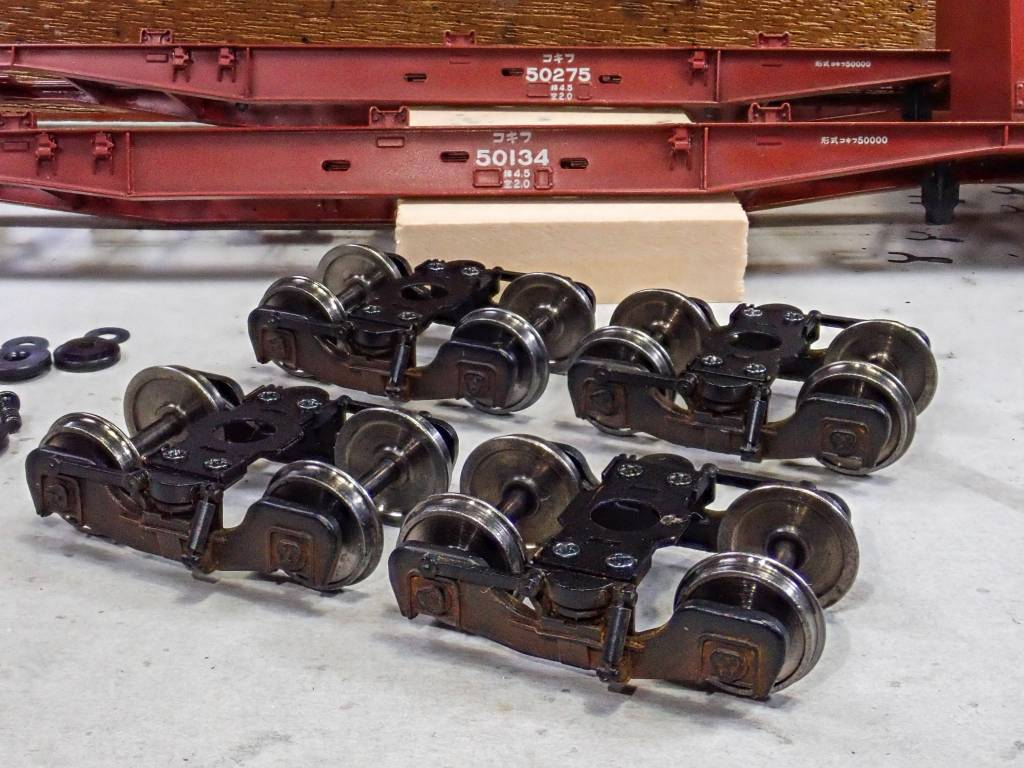 台車は黄錆と赤錆で汚します。