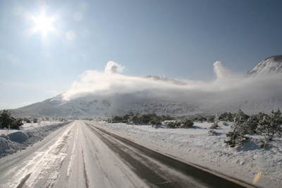 硫黄山に差し掛かります。 比類無い美しい朝です。