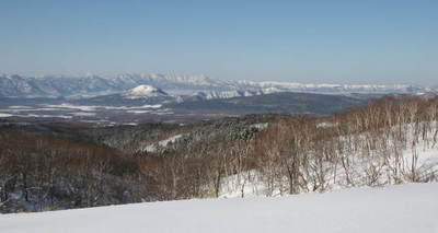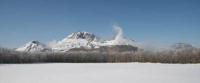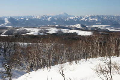 雄阿寒岳です。大きな雌阿寒は背後でしょうか。