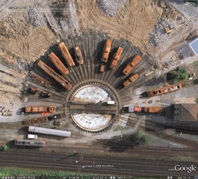 このニュルンベルクの扇形庫、グーグルアースの画像がこれです。