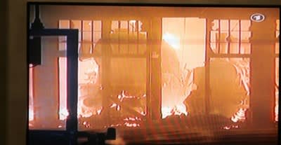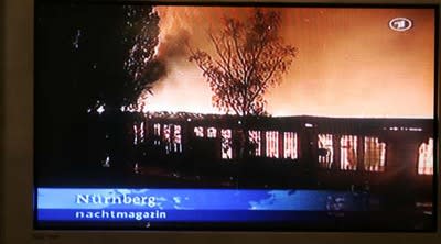 あの懐かしいニュルンベルクの扇形庫が火に包まれています!!